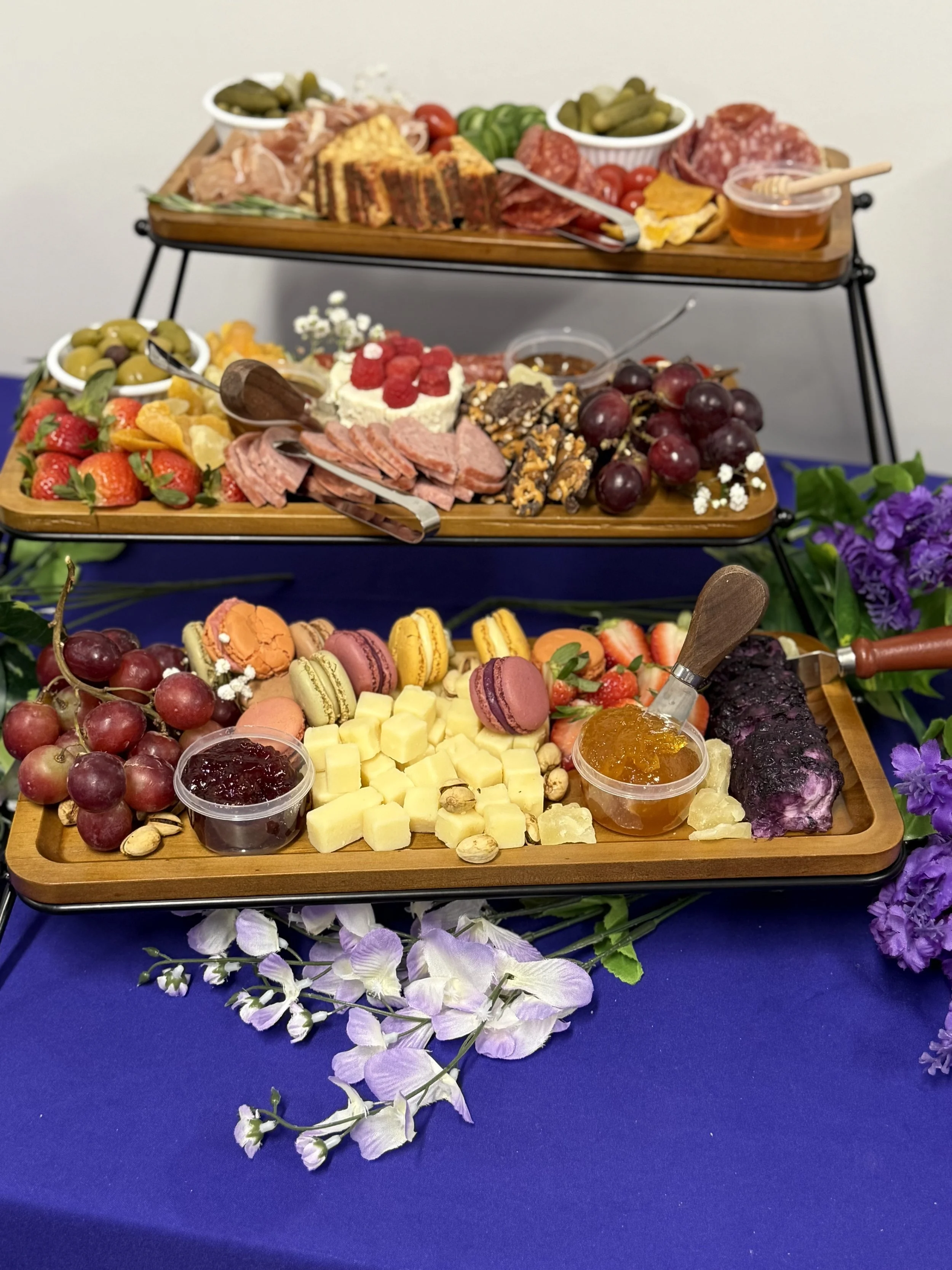 Our mobile charcuterie cart brings a curated, picture-perfect display directly to your venue anywhere in the Dallas–Fort Worth metroplex. Perfect for grand openings, corporate events, weddings, open houses, and milestone celebrations.